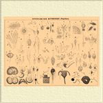 Рис. 1. Амебобиченосец шероховатый, или Мастигамеба (Mastigamoeba aspera). Рис. 2. Лучемонада (Actinomonas mirabilis). Рис. 3. Хвостомонада кишечная (Cercomonas intestinalis). Рис. 4. Хвостомонада человеческая (Monocercomonas hominie). Рис. 5. Ойкомонада конечная, или монада крошечная (O icomonas termo): n — ядро, a — вакуоля с пищевым комком. Рис. 6. Монада капельная (Monas guttula). a — целое животное, b и c — в двух друг за другом следующих стадиях продольного движения. Рис. 7. Цветопузырник прозябающий, или Антофиза (Antophysa vegetans). a — молодая колония, состоящая из семи членов, b — отдельное животное большой формы, c — оно же, выпускающее ножки (псевдоподии), d — отдельное маленькое животное, включающее в себе паразита (1), f — циста отдельного члена колонии, в которой тело его распалось на споры, e — циста лопнувшая, из которой выходят однобичевые зародыши. Рис. 8. Мохомонада (Dinobryon sertularia). a — колония со многими членами, каждый член колонии (а) помещается в отдельной чашечке, и в некоторые чашечки проникают паразитные монады (b). B -отдельный, выделенный из колонии член. Рис. 9. Хвостоглазка, или уроглена (Uroglena volvox): a — часть колонии, b — отдельное, выделенное из колонии животное, которое окружается цистою и распалось на четыре споры, с — искусственно разорванная циста, из которой выступили многочисленные споры. Рис. 10. Эвглена кровавая (Euglena sanguinolenta) в различных степенях сокращения. Рис. 11. Эвглена зеленая (Euglena viridis). a и b — животные в движении, с — энцистированная эвглена, d — тело эвглены зеленой в цисте распадается на споры. Рис. 12. Трахеломонас (Trachelomonas armata). Рис. 13. Политома (Polytoma uvella), а — отдельное неделимое, b — копуляция двух неделимых. Рис. 14. Бодон мочевой (Bodo s. Cystomonas urinarius). Рис. 15. Бодон скачущий (Bodo saltans): а и b — в движении, c — в поперечном делении. Рис. 16. Бодон хвостатый (Bodo caudatus): a — одно неделимое, сбоку, проглотившее двух монад, b — бодон хвостатый (1), высасывающий монаду (Chlamydomonas) (2). Рис. 17. Бодон, или змеемонада мухи (Bo do s. Herpetomonas muscae). a — c — молодые экземпляры, d и e — взрослые экземпляры, f и g — в продольном делении. Рис. 18. Змеемонада, или герпетомонас Левиса (Herpetomonas Lewisii) из крови хомяка: а и b — отдельные, свободно в крови плавающие неделимые, с — неделимое, прилегающее к красному кровяному шарику. Рис. 19 . Четырехбичевник, или тетрамит (Tetramitus rostratus): а — целое животное, b — в продольном делении; c — два неделимых, копулирующих задними концами тела. Рис. 20. Власомонада кишечная (Trich omonas intestinalis). Рис. 21. Власомонада влагалищная (Trichomonas vaginalis). Рис. 22. Шестибичевник, или гексамит кишечный (Hexamitus intestinalis). Рис. 23. Мегастома, или Большеротка кишечная (Megastoma intestinalis): а — отдельное, свободное животное, b — одна Мегастома (1), прилегающая к клеточке эпителия кишечного канала (2). Рис. 24. Фаланстерий пальчатый (Phalansterium digitatum): а — колония, b — отдельная, выделенная из колонии фаланстерия. Рис. 25. Сальпингека, или трубкожилка ландышевидная (Sa lpingoeca convallaria): a — отдельное взрослое животное, b — в продольном делении. Рис. 26. Гленоидий опоясанный (Glenoidium obliquum): a — бич, высовывающийся из переднего конца тела; b — бич, выступающий из поперечной борозды. Рис. 27. Пророцентр блестящий (Prorocentrum micans). Рис. 28. Рогачка (Ceratium tripos). Рис. 29. Перединий (Peridinium tabulatum); a — бич, выходящий из переднего конца тела, b — бич, выступающий из поперечной борозды. Рис. 30. Трипаносома (Trypanosoma sanguinis) в различных формах из крови лягушки. Рис. 31. Полимит (Polymitus): a — красное кровяное тельце птицы (1), в ко