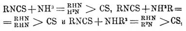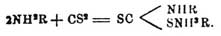 a также со спиртами и меркаптанами при нагревании в запаяной трубке до 110°, причем образуются тио— и дитиокарбаминовые эфиры по уравнениям: