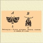 Листовертка — Tortrix xylosteana. Естеств. величина. А — самец, B — самка