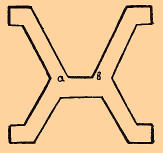 Таким образом, определения кг с точностью того же порядка, что и в определении метра, мы еще не имеем. Распространение метрич. системы в других государствах, в связи с неопределенностью понятий о М. и кг, возбудило мысль о необходимости международного соглашения об основаниях этой системы. По почину русского академика Якоби (1869), созваны были в 1870, 1872 и 1875 гг. французским правительством в Париже международные съезды для обсуждения относящихся сюда вопросов, и в дипломатической конференции 8 (20) мая 1875 г. подписан был международный (Россия, Германия, Англия с 1884 г., Аргентина, Австро-Венгрия, Бельгия, Бразилия, Дания, Испания, С.-А. Соед. Штаты, Франция, Италия, Перу, Португалия, Швеция и Норвегия, Швейцария, Турция и Венесуэла) договор, на основании которого в Париже учреждается поддерживаемое общими средствами научное учреждение "Международное бюро мер и весов". Бюро управляется международным комитетом мер и весов [Представителем России в 1895 г. был академик Вильд, председателем в 1895 г. проф. Ферстер (Германия)], и основные цели, для которых оно назначено, следующие: сохранение основных нормальных прототипов М. и кг, изготовление копий с них для других государств, исследование и сравнение этих копий, сравнение эталонов неметрических мер и весов с эталонами метрическими и т. д. Бюро основано было в Севре около Парижа, работает уже около 20 лет, выпустило XI томов своих работ и выполняет по мере возможности все возложенные на него поручения. Обладая богатыми средствами, оно расширило круг своей деятельности и предпринимает обширнейшие научные исследования, соприкасающиеся с вопросами метрологии. Издания его: "Travaux et Mé moires du Bureau Int. d. Poids et Mesures" должны быть причислены к выдающимся научным изданиям настоящего времени. В числе остальных государств и Россия получила из Бюро две пары исследованных копий прототипа метра и килограмма, одна из которых хранится в Академии наук, другая в Главной Палате мер и весов. Эти прототипы сделаны согласно всем тем условиям, которые выработало бюро для основных прототипов мер, т. е. они сделаны из сплава платины (90%) и иридия (10%), сплава, который при наименьшей химической изменчивости обладает высокой твердостью и упругостью; метру придается сечение в виде буквы Х (см. фиг.), предложенное Треска в 1872 г. и отличающееся тем, что деления можно наносить на нейтральной плоскости бруса ab: такой метр представляет нарезную меру (à trait), a не концевую (à bout), т. е. метр меряется на нем не между концами бруса, а между двумя чертами, нанесенными на нем.