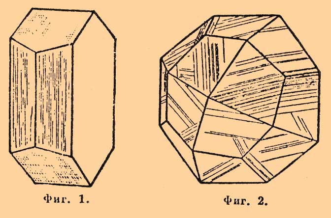 — закономерное (двойниковое) срастание многих неделимых, дающих в результате "кристалл" с высшей симметрией, нежели составляющие его неделимые. Такие "кристаллы" называются миметическими. Примером может служить (кроме указанного в двойниках альстонита) микроклин — калиевый полевой шпат (K 2.Аl 2 О 36SiO2) трехклиномерной системы. Его "кристаллы" имеют кажущуюся симметрию одноклиномерной системы, т. е. выше трехклиномерной, почему прежде и относили его к ортоклазу. Однако микроскопические исследования показали, что кристаллы микроклина состоят из огромного количества тонких пластинок трехклиномерной системы, сросшихся между собой в двойниковом положении по плоскостям брахипинакоида (010), что и выражается на поверхности базопинакоида (001) чрезвычайно тонкой штриховкой, соответствующей числу пластинок (фиг. 1). Другой пример — лейцит, кристаллы которого относятся к правильной или квадратной системе, однако состоят из многих неделимых низшей симметрии (ромбической или одноклиномерной, фиг. 2; см. Лейцит).