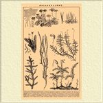 1. Печеночник (Marcharitia polymorpha) а — женское слоевище, b — мужское, с — корневой волосок, или ризоид с вдающимися в его внутренность отростками; d — клеточка из слоевища с сетчатым утолщением; е — поперечный разрез слоевища в увел виде. 2. Anthoceros laevis; b — слоевище с плодиками, а — один из плодиков, раскрывшийся и увел. 3. Jungermania (Plagiochila) asplenioides; а — стебелек с 2 плодиками, из которых один цельный, а ддругой раскрывшийся, b — пружинка и 4 споры. 4. Водяной мох (Fontinalis antipyretica). 5. Лесной мох (Hypnum cuspidatum); а — его плодик в ув. виде. 6. Neckera crispa. 7. Mnium undulatum; а — его плодик в увел. виде.