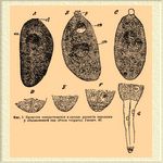 Произошедшее через слияние зачатковое ядро спускается на дно яйца (вместе с тем и архегониия) и здесь повторным делением дает 4 ядра; скоро мы находим в этом месте 4 клеточки, расположенные в одной плоскости (фиг. 7, D). Клеточки делятся поперечными перегородками, так что получается несколько четырехклетных этажей (E, F). Затем, один из этажей вытягивается в 4 длинные нити, унося на вершине вглубь заростка клетки, служащие для развития зародыша (G). Таким образом, начинают формироваться 4 зародыша, но доразвивается обыкновенно только один. Равным образом, хотя было бы оплодотворенно и несколько архегониев, в зрелом семени находится один только зародыш, как и у скрытосемянных. Зародыш этот лежит среди остатков заростка или, как его называют здесь — эндосперма (белка). Так как описанный способ передачи мужского элемента О. через трубочку (пыльцевую) характерен для всех цветковых растений и отличает их от всех высших споровых, то Энглер предложил называть эти растения сифоногамными (Embryophyta siphonogama), противопоставляя их производящим сперматозоиды высшим споровым — зоидиогамным растениям (Zoidiogamae). Недавно, однако, Хиразе и Икено открыли существование сперматозоидов и у цветковых растений — у Cycas и Ginkgo, принадлежащих к голосемянным. В конце пыльцевой трубочки у них генеративные клеточки превращаются в 2 овальных сперматозоида, снабженных многими ресничками. Сперматозоиды плавают довольно быстро в жидкости, окружающей архегонии, добираются до яйца и оплодотворяют его. Причина образования сперматозоидов кроется, по мнению Икено, в том, что пыльцевая трубочка у этих растений очень коротка и не доходит до архегония, так что без помощи подвижных мужских гамет, т. е. сперматозоидов, О. у них было бы невозможно. Во всяком случае, существуют растения одновременно сифоногамные и зоидиогамные, являющиеся в высшей степени интересной переходной формой по своему О. между высшими споровыми и цветковыми растениями. Специальная литература об О. у растений чрезвычайно обширна. Подробности и литературные цитаты можно найти в следующих сочинениях: проф. И. П. Бородин, "Процесс оплодотворения в растительном царстве" (2-е изд., 1896); F. Pax, "Allgemeine Morphologie der Pflanzen" (1890); van-Tieghem, "Trait é de botanique", том I , 1891; E. Strasburger, "Das botanische Practicum" (3 изд., 18 97); G. Klebs, "Die Bedingungen der Fortpflanzung bei einigen Algen und Pilzen" (1896); S. Hirase, "Untersuchungen ü ber das Verhalten des Pollens von Ginkgo biloba" ("Botanisches Centralblatt", 1897, № 2—3); prof. I. Ikeno, "Vorla üfige Mittheilung über die Spermatozoiden bei Cycas revoluta" (там же, № 1).