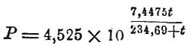 Приводим еще (по Цейнеру) формулы для упругости П. эфира, хлороформа и ртути: если выражать температуру t в градусах Цельсия, а упругость Р в мм ртутного столба то ход изменения Р можно выразить формулой