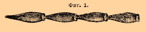 I. Первый способ наиболее простой и наиболее старый. В средние века он имел широкое распространение, в настоящее же время почти совершенно оставлен. Операция производится в железных или чугунных ретортах, величина которых изменяется в зависимости от размеров производства. Их обыкновенно по несколько штук вмазывают в одну общую печь. Реторты плотно соединены с холодильниками (обыкновенно металлическими), которым придается различное устройство: то они делаются в виде труб, то в виде вытянутых бутылей и т. д. (фиг. 1); в них обыкновенно наливается некоторое количество воды, причем или каждая реторта имеет свой холодильник, или один холодильник служит для нескольких реторт.