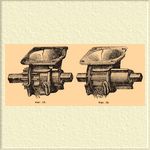 Последние насаживаются на ось, проходящую по всей длине ящика, задняя стенка которого имеет отверстия для прохода семян. Если эти отверстия надлежащей величины, то количество высеваемых семян регулируется большею или меньшею скоростью движения машины или надвиганием на эти отверстия (с целью сужения их просвета) особой планки или заслонки. Это старинная система, но до сих пор еще остающаяся в употреблении в наиболее дешевых сеялках. Только катушки со щетками вследствие скорого их стирания заменяются рифлеными кружками. Такого рода устройство применяется в ручных тачечных сеялках (см. выше). — В. Веялки с ребристыми катушками. В наиболее старых машинах этого типа сеялок также находили себе применение щетки. Семена из ящика-приемника попадали в углубления различного вида и величины, сделанные на поверхности катушек, насаженных на ось, откуда и сгребались щетками. Количество посевных семян определялось при этом формою и размером указанных выше углублений и степенью приближения щеток к катушкам, что регулировалось, в свою очередь, особым нажимным винтом. В машинах новейших систем щетки более не употребляются; в них высевной снаряд состоит из вращающегося ребристого или ячеистого вала, как это применено, напр., в сеялке К. Бермана (фиг. 13 и 14) или из желобчатого вала, принятого в сеялке Ланса и изображенного на фиг. 15.