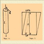 4) Кручение. В этом случае происходит лишь сдвиг одних частиц относительно других, только величина этого сдвига неодинакова для разных мест одного и того же сечения. Представим себе (черт. 6), что цилиндр длиною l закреплен с одного конца и что к другому его концу, в плоскости, перпендикулярной к оси, приложен скручивающий момент М, повернувший эту плоскость на дугу θ . Выделим мысленно трубчатый цилиндр, концентрический с данным, той же длины, но радиуса r, с ничтожной толщиной стенок Δ r, и развернем этот цилиндр в плоскость. До скручивания он представил бы прямоугольник (см. черт. 7), длиной AB и шириной 2π r; после скручивания он обратится в параллелограмм, мерой сдвига будет служить BAB = (r θ)/l.