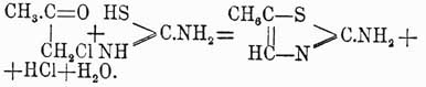 то его кольцо распадается уже при простом кипячении с водой. Тиомоноазолы получаются обыкновенно при действии тиаимидов (см.) кислот на галоидопроизводные кетонов: