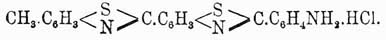 Как было уже упомянуто выше, вещества эти непрочны и при кипячении с водой распадаются на серу, азот и соответствующий цианамид. В практике в последнее время приобрели значение бензотиазолы, которые можно представить себе, как производные хинолина, в котором группа —СH=СН— пиридинного ядра замещена серой: