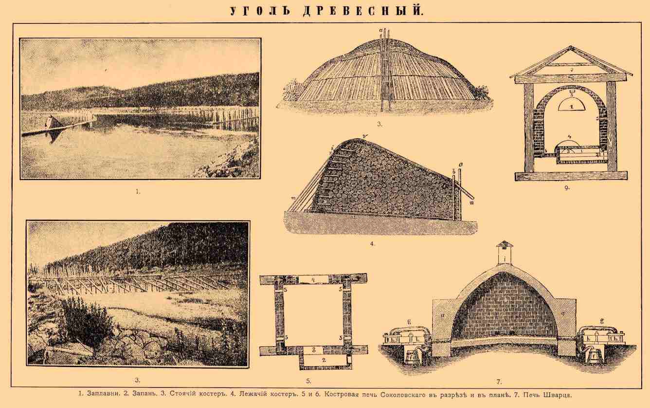 Ср. А. А. Бунге, "Курс химич. технологии" (1894); Ильенков, "Курс химич. технол." (1861, 2-е изд.); D-r Josef Bersch, "Die Verwertung des Holzes"; D-r Georg Themus, "Die Meiler und Retorten-Verkohlung"; Менделеев, "Уральская железная промышленность в 1899 г.".