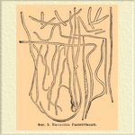 Если эти длинные нити оставить снова при темп. в 34°С, то на них можно заметить появление вздутий, одновременно на нитях начинают появляться коротенькие членики, и, наконец, нити распадаются на множество отдельных клеток незначительной величины, а вздутые клетки постепенно растворяются (см. фиг. 4).