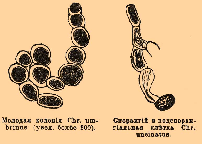 Спорангий и подспорангиальная клетка Chr. uncinatus.