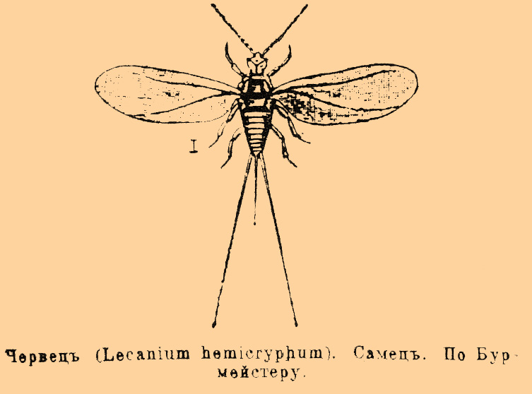 Червец (Lecanium hemicryphum). Самец. По Бурмейстеру.
