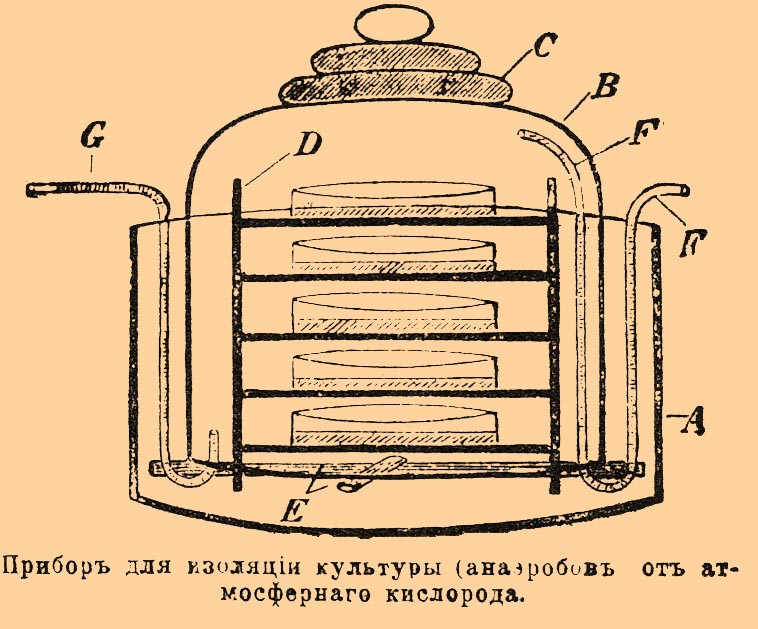 Прибор для изоляции культуры (анаэробов от атмосферного кислорода).