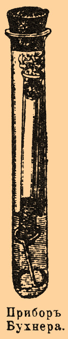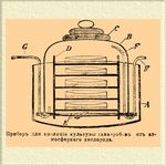 Для приготовления же самого картофеля пользуются двумя способами: один из этих способов состоит в том, что картофель тщательно очищают снаружи от земли, моют, обмывают раствором сулемы, иногда стерилизуют в паре и потом стерилизованным ножом делают из него кружки, которые и помещают в стерилизованные чашки Петри. Другой способ состоит в том, что из тщательно вымытого картофеля приготовляют кружки или особые косо срезанные цилиндры, помещают их в чашки Петри или особые пробирки и тогда стерилизуют. Второй способ, во всяком случае, гарантирует большую чистоту культуры. Для бактерий молока приходится применять в качестве среды молоко, но, к сожалению, до сих пор еще не выработано таких методов стерилизации, которые бы, обеспложивая молоко, не влияли бы на его состав. Само по себе молоко стерильно, если получено от здоровой коровы (и такое молоко наиболее пригодно для культур), но уже при доении в него попадает такое количество микроорганизмов из воздуха, что оно делается негодным для культур. Путем фильтрации через фильтр Шамберлена нельзя получить стерильное молоко, так как фильтр вместе с бактериями задерживает казеин и жир, пропуская только сыворотку. Различные предложенные химические способы, состоящие в прибавлении различных дезинфицирующих веществ (формалина, хлороформа и т. п.), тоже малопригодны. Остается стерилизация путем нагревания молока до 100° в течение 3 дней по 1 часу или один раз до 120° Ц., но при этом изменяется его состав: молочный сахар превращается в карамель и молоко получает желтоватую окраску, так что делается малопригодным для бактериологических целей. Те же трудности, что при приготовлении сред из молока, приходится испытывать и при приготовлении сред из мочевины и др. веществ, изменяющихся легко при нагревании. Так как изучение некоторых процессов, совершающихся в природе, например процесса нитрификации, требовало получения возбудителей этого брожения в Ч. культурах, которые, несмотря на целый ряд попыток, предпринятых различными учеными, не увенчались успехом, то вполне понятен тот интерес и значение, которое имела введенная Виноградским в бактериологическую технику чисто минеральная твердая среда, где роль желатина или агар-агара играла кремнекислота (предложенная Кюне), а самая среда имела следующий состав: сернокислого аммония 0,4, сернокислой магнезии 0,05, фосфорнокислого калия 0,1, хлористого кальция следы, углекислого натра 0,6-0,9, воды 100. Вместе с введением в бактериологическую технику кремнекислой твердой среды Виноградский ввел в бактериологию понятие об элективной культуре, дающей возможность получать в Ч. культурах микроорганизмы, не прибегая к желатину или агар-агару, но создавая в жидких культурах такие условия, при которых может обнаружиться только одна определенная функция. Так что микроорганизм, обладающий этой определенной функцией, получает возможность развиваться в более благоприятных условиях, по сравнению с другими находящимися в смеси микроорганизмами, которых развитие или замедляется, или же совершенно останавливается. Метод этот успел уже оказать большие успехи в бактериологии. Существование организмов, развитие которых происходит только в отсутствии кислорода воздуха (анаэробов), заставило позаботиться о выработке специальных методов, которые, главным образом, осно