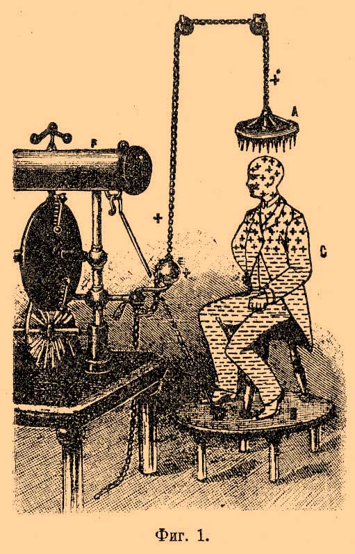 С того времени как Tesla, пропуская разрывной разряд конденсатора через первичную спираль катушки Румкорфа, довел число перемен тока в секунду до сотен тысяч и даже до нескольких миллионов и изобрел таким образом токи большой частоты, начали все более и более применять эти токи к лечению различных болезней.