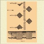 4) Из наклонных бревен, соединенных между собой по четыре и образующих род плотика (черт. 5), один конец которого опущен на дно с помощью груза, а другой поддерживается бочками.
