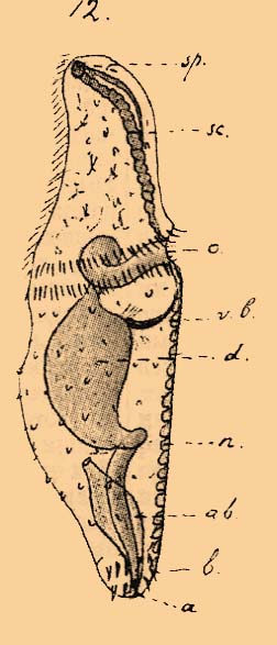 Таблица ЭХИУРОВЫЕ. Фиг. 12. Echiurus. Личинка (начало превращения).