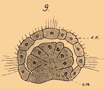 Таблица ЭХИУРОВЫЕ. Фиг. 9. Tralassema mellita. Стадия гаструлы.