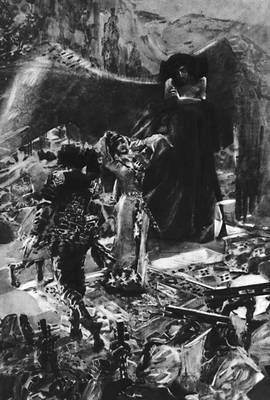 М. А. Врубель. «Пляска Тамары». Иллюстрация к поэме М. Ю. Лермонтова «Демон». Чёрная акварель, белила. 1890—91. Третьяковская галерея. Москва.