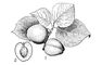 Абрикос: 1 — ветка с плодами; 2 — продольный разрез плода.