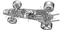 Гоночный автомобиль (формула 1): 1 — радиатор; 2 — дисковой тормоз; 3 — топливные баки; 4 — двигатель; 5 — коробка передач.