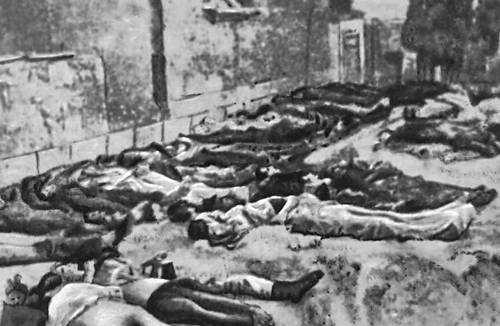 Греция в период борьбы с фашистскими оккупантами. Жертвы голода на улицах Афин.
