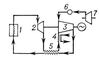 Ðèñ. 4. Ñõåìà ãàçîòóðáèííîãî äâèãàòåëÿ, ðàáîòàþùåãî ïî çàìêíóòîìó öèêëó: 1 — ïîâåðõíîñòíûé íàãðåâàòåëü; 2 — òóðáèíà; 3 — êîìïðåññîð; 4 — îõëàäèòåëü; 5 — ðåãåíåðàòîð; 6 — àêêóìóëÿòîð âîçäóõà; 7 — âñïîìîãàòåëüíûé êîìïðåññîð.