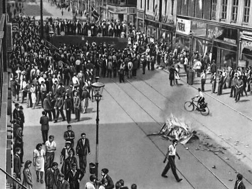 Антифашистские выступления копенгагенских рабочих в дни всеобщей забастовки протеста против оккупации Дании. Июнь 1944.