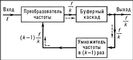 В самовозбуждающемся генераторе синусоидальных колебаний деление осуществляется синхронизацией его частоты на субгармоническом колебании частоты внешнего периодического сигнала с использованием явления захватывания частоты. В регенеративном Д. ч. синусоидальных колебаний (рис.) на преобразователь частоты подаются периодический сигнал частоты f, подлежащей делению, и сигнал частоты (k - 1)×f/k (k — коэффициент деления), возникающий в цепи обратной связи только при подведении на вход Д. ч. напряжения преобразуемой частоты. На выходе преобразователя выделяется сигнал разностной частоты, равной f/k. В устройстве, состоящем из самовозбуждающегося генератора и ФАПЧ, фазовым детектором сравниваются частота гармонического колебания в k раз большая, чем основная частота колебаний генератора, и делимая частота. С выхода фазового детектора напряжение рассогласования, пропорциональное разности сравниваемых частот, подаётся на генератор и изменяет его основную частоту до тех пор, пока она не станет точно в k раз меньше делимой частоты. Для деления частоты повторения импульсных сигналов применяют Д. ч. на релаксационных генераторах (мультивибраторах и блокинг-генераторах), работающих в периодическом режиме с захватыванием частоты повторения импульсов на субгармоническом колебании или в ждущем режиме с периодом повторения импульсов большим в k раз. Практически k не превышает 10.