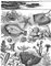 Различные представители морского бентоса. Организмы, свободно передвигающиеся по дну: краб Carcinus (2); морская звезда Asterias (3). Организмы, то лежащие на дне, то плавающие: скат (4); камбала (5). Организмы малоподвижные: моллюски — хитон (Chiton) (6); гребешок (Pecten) (9); блюдечко (Patella) (11). Организмы, прикрепленные или лежащие на дне: устрицы (8). Организмы, закапывающиеся в грунт: ланцетник (15); моллюск Муа (16). Организмы, сверлящие скалы: моллюск Pholas (12). Организмы, неподвижно прикрепленные: кораллы, строящие рифы (1); ракообразное — морской желудь (Balanus) (7); асцидия Phallusia (10); стеклянная губка Euplectella (13); трубчатый червь Spirografis (14); гидроид Tabularia (17); морская лилия (18).
