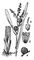 Ежеголовник прямой, верхняя и нижняя части растения; а — пестичный цветок; б — тычиночный цветок; в — плоды.