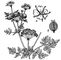 Болиголов пятнистый: ветка с цветками и плодами; а — цветок; б — плод.