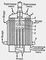 Рис. 3. Контактный аппарат для окисления нафталина во фталевый ангидрид: 1 — катализаторные трубки; 2 — расплав солей (селитрянная баня); 3 — пропеллерная мешалка; 4 — трубки для воздушного охлаждения; 5 — рубашка для воздушного охлаждения; 6 — коллектор отходящего воздуха.