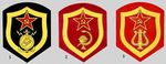 Нарукавные знаки для прапорщиков, сержантов, солдат и курсантов военных училищ. 1. Военные строители и другие строительные части. 2. Медицинская и вет. служба. 3. Военные дирижёры и музыканты.