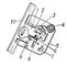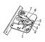Рис. 2. Двухоборотный сувальдный замок с ключом: 1 — бородка ключа с прорезями для сувальд; 2 — ригель; 3 — сувальда с просечкой под запорную стойку; 4 — ось; 5 — запорная стойка; 6 — пружина сувальды; 7 — упорный штифт.