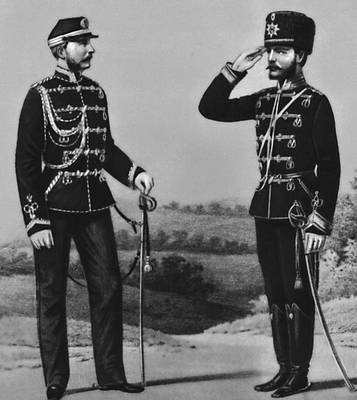 Офицер и унтер-офицер гвардейских гусарских полков (1877—82).