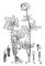 Купальница европейская: а — нижняя часть растения с прикорневыми листьями; б — верхняя часть цветоносного побега; в — лепесток-нектарник; г — тычинка; д — гинецей; е — зрелые листовки.