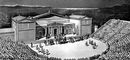 Афинский театр. 5 в. до н. э. Реконструкция Г. Булле и Г. Вирсинга с изображением представления «Агамемнона» Эсхила.