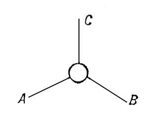 Интенсивное развитие техники ускорителей заряженных частиц и обязанное ему небывалое увеличение потока экспериментальной информации об элементарных частицах заметно отразились на направлении теоретических поисков. Особое внимание привлекает величина, имеющая непосредственный физический смысл, — амплитуда рассеяния (квадрат её модуля определяет вероятность процесса). Для каждого процесса амплитуде рассеяния можно поставить в соответствие диаграмму, напоминающую по виду диаграмму Фейнмана, но имеющую принципиально иной смысл. Рассмотрим, например, диаграмму, изображенную на рис. 10. Она похожа (рис. 4 и 5) на график вершинной части (и называется также вершинной), но теперь это не графическое изображение приближённого (полученного при помощи теории возмущений) решения некоторого уравнения, — график просто фиксирует процесс, в котором принимают участие частицы А, В и С. Если масса mA частицы А больше суммы масс mB + mC частиц В и С, то диаграмма описывает реальный распад А ® В + С. Если распад энергетически запрещен, то хотя бы одна из линий диаграммы относится к виртуальной частице. Кружок на рис. 10 означает, что вершина является физической, т. е. непосредственно соответствует тому, что выступает в эксперименте. Если линии А и В относятся к реальным нуклонам (например, протонам), а линия С изображает виртуальный фотон, то такая вершинная часть зависит лишь от одной переменной. Требования теории относительности заставляют выбрать в качестве такой переменной величину