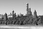 Вид части ансамбля с Москвы-реки. Справа налево — 1-я Безымянная башня (15—17 вв.), колокольня «Иван Великий» (1505—08, архитектор Бон Фрязин, надстроена в 1600), Архангельский собор (1505—08, архитектор Алевиз Фрязин Новый), 2-я Безымянная башня (15—17 вв.).