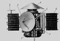 «Марс-3»: 1 — приборный отсек; 2 — антенна научной аппаратуры «Стерео»; 3 — параболическая остронаправленная антенна; 4 — спускаемый аппарат; 5 — радиаторы системы терморегулирования; 6 — панель солнечной батареи; 7 — блок баков двигательной установки; 8 — приборы системы астроориентации.