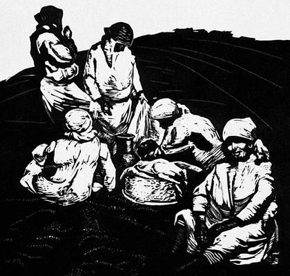 Л. С. Шанина-Трембачевская. «Обед в поле». Линогравюра. 1965.