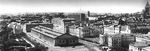Вид города с Ленинских гор. На втором плане — стадион им. В. И. Ленина в Лужниках (1955—56, архитекторы А. В. Власов, И. Е. Рожин, А. Ф. Хряков, Н. Н. Уллас, инженеры В. Н. Насонов, Н. М. Резников, В. П. Поликарпов).