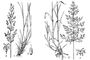 Полевица: 1 — собачья (а — колосок, б — нижняя цветковая чешуя с остью); 2 — побегообразующая (а — колосок).