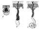 Схема многоклеточной железы земноводных (1) и потовых желёз низших (2) и высших (3) млекопитающих.