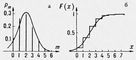 ; б — функция распределения ( n = 10, p = 0,2 ). Гладкими кривыми изображено нормальное приближение биномиального распределения.