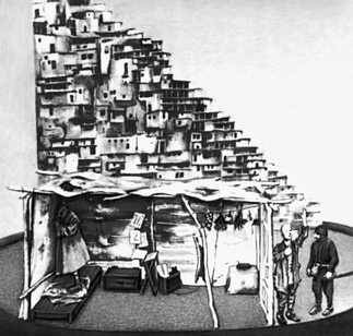 Театрально-декорационное искусство. К. фон Аппен. Декорации к пьесе Б. Брехта «Кавказский меловой круг». Театр «Берлинер ансамбль». 1954.