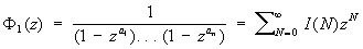 где a1,..., an — натуральные числа, в целых неотрицательных числах X1,..., Xn, Л. Эйлер построил производящую функцию Ф (z) от переменной z, коэффициенты которой при разложении по степеням z равняются числу решений указанного уравнения. Функция Ф (z) определяется как формальное произведение рядов