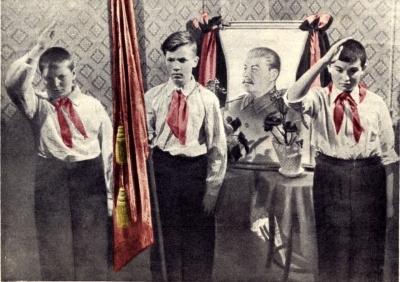 | − | [[Файл: | + | [[Файл:Stalin death mourning-Pioneers guard near portrait.jpg|thumb|400px|center|5 марта 1953 года [[Иосиф Виссарионович Сталин (некролог)|умер И.В. Сталин]]. Раскрашенное фото из журнала «Огонёк» от 15 марта 1953г.]] |
